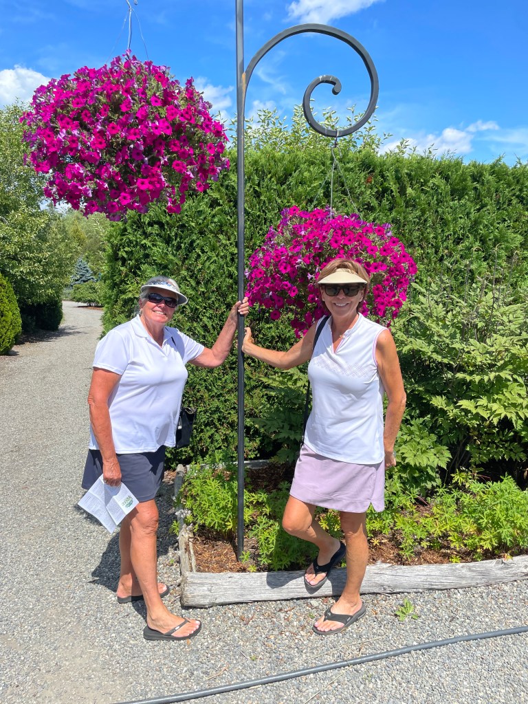 The Canadian journey has begun, we crossed the border on July 26th at a very small border crossing. This did not however stop them from making sure we paid some extra tax for all the wine we still had on board the coach. We were ok with that and moved on because the wine up here is very expensive for what you get. We checked in at the Kiwanis Oceanfront Camping in St. Andrews where we had 2 great spaces right across the street from the water. Lots of exploring around the harbor towns, walking out on the pier, checking out the local lighthouses and a few magical mystery tours. We played golf at the Algonquin Golf Course filled with water views. Biked on the trials along the water, lunch at the Harbor Front Restaurant, visited the Kingsbrae Gardens, a 27 acre property with flowers, plants and some animals.